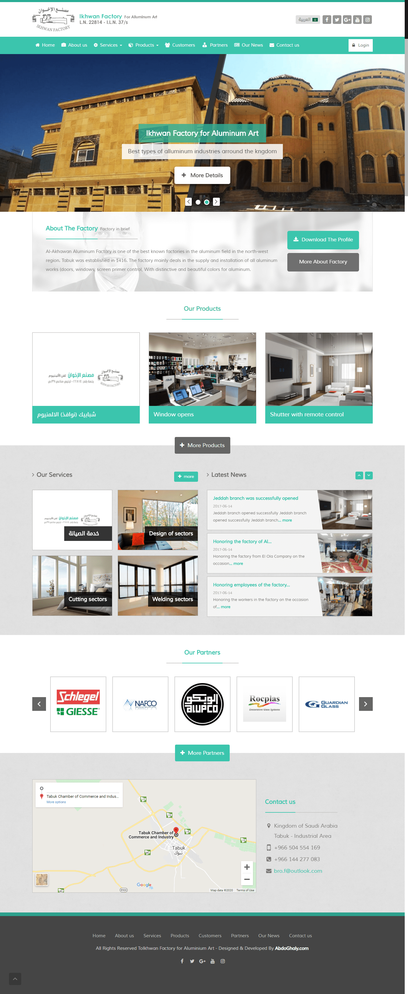 An introductory website for a factory for the manufacture of aluminum using modern methods in Tabuk, Kingdom of Saudi Arabia. WordPress and the site is multilingual and has many features