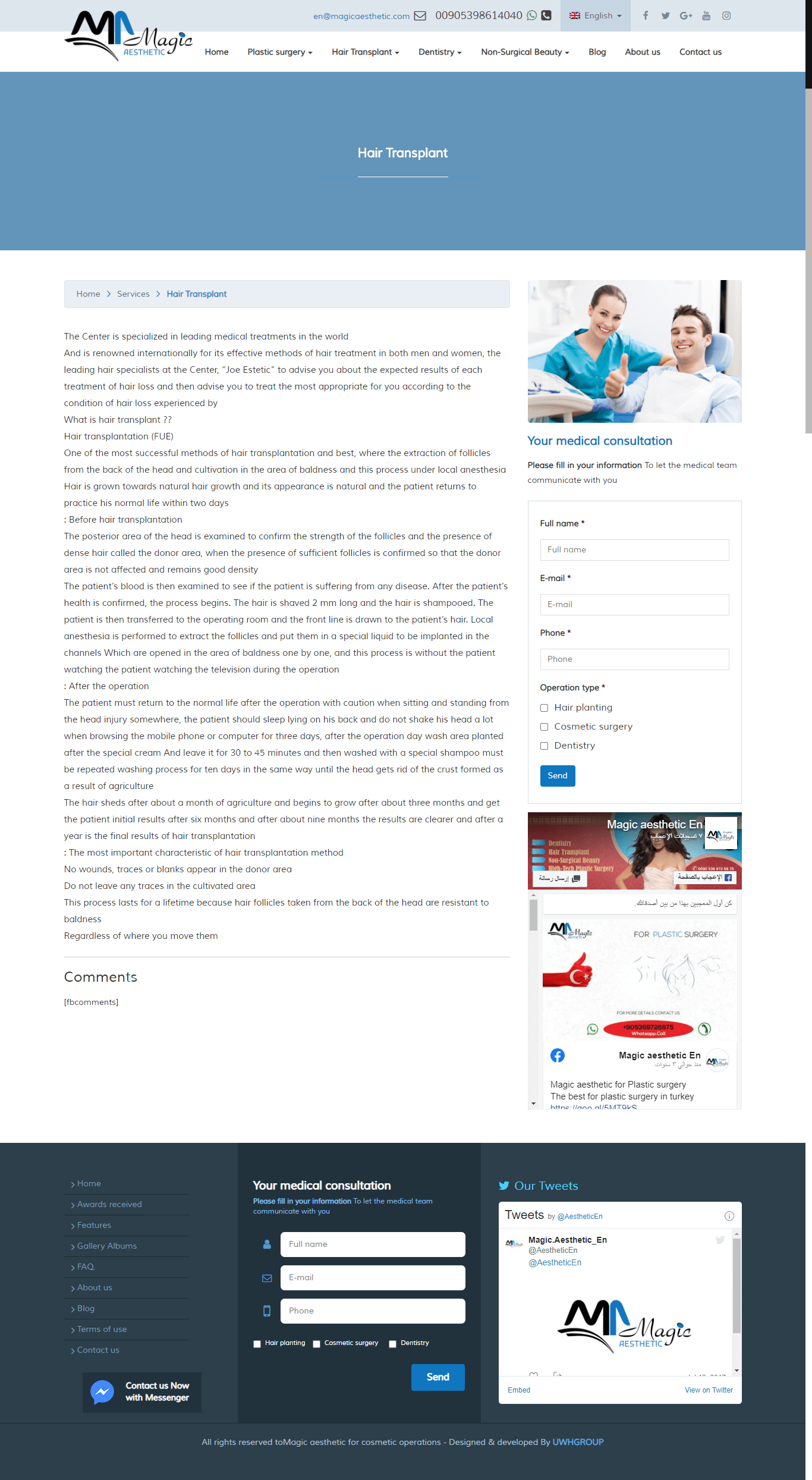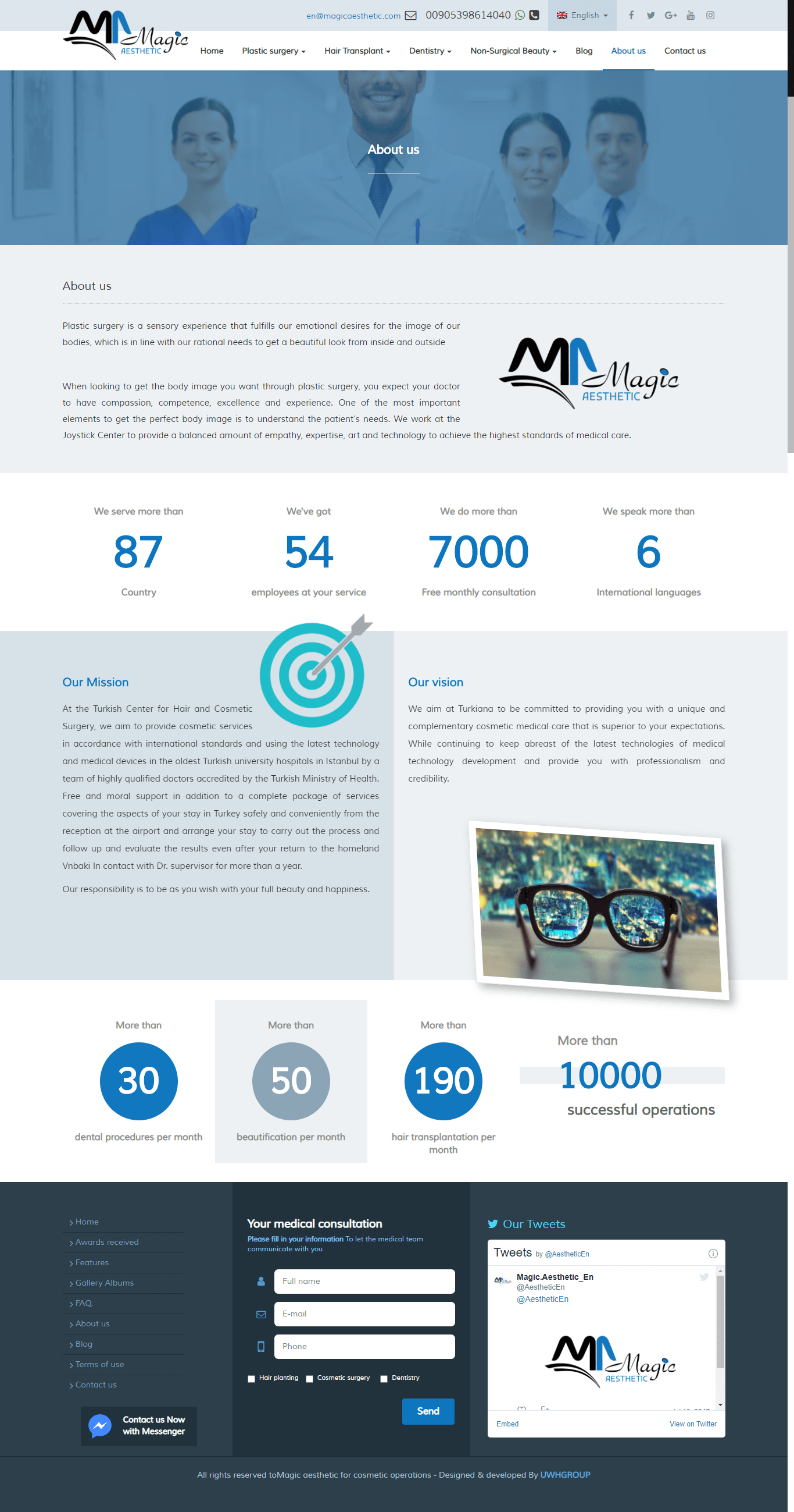 Magic Aesthetic Center .. A clinic specialized in plastic surgery in the state of Turkey .. A large introductory site with many features and multilingualism, relying on WordPressIt was specially designed for UWH Group, Turkey