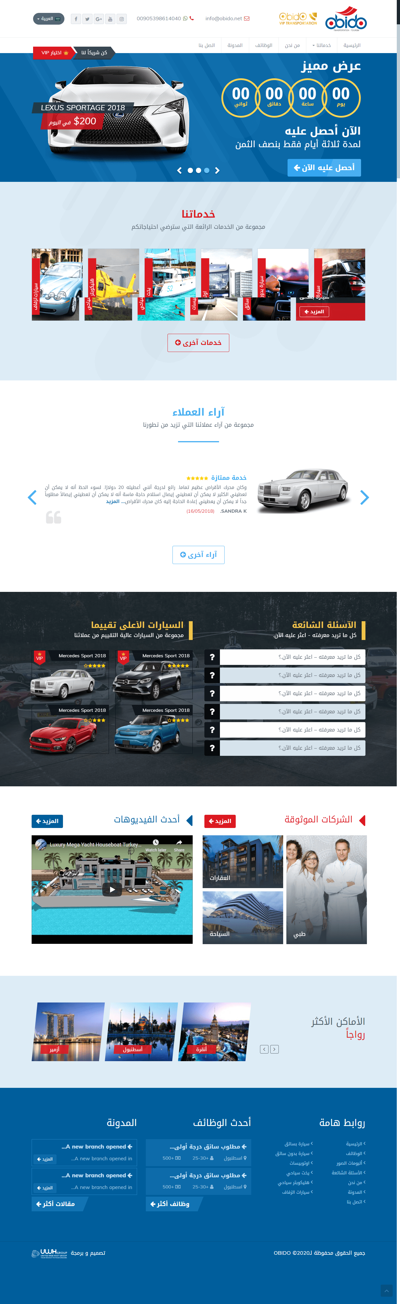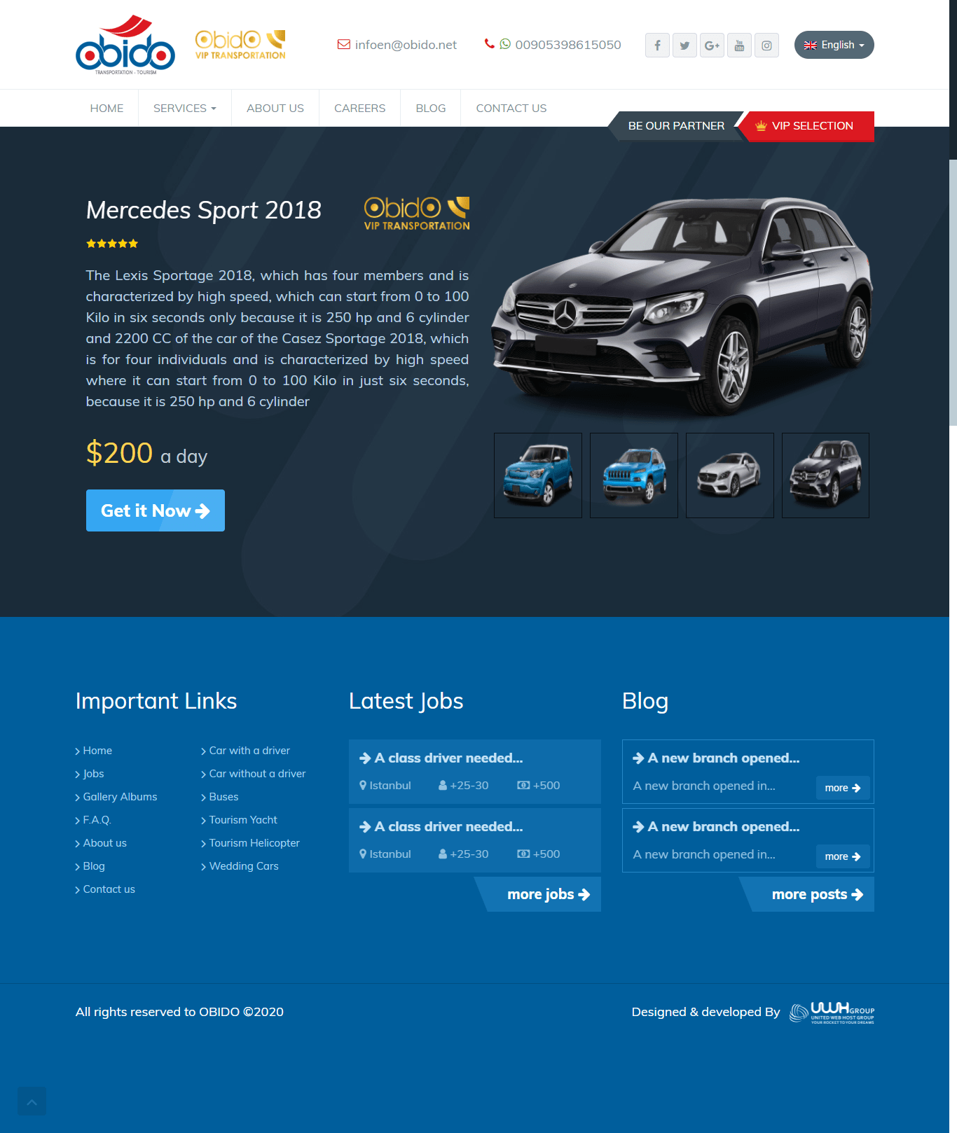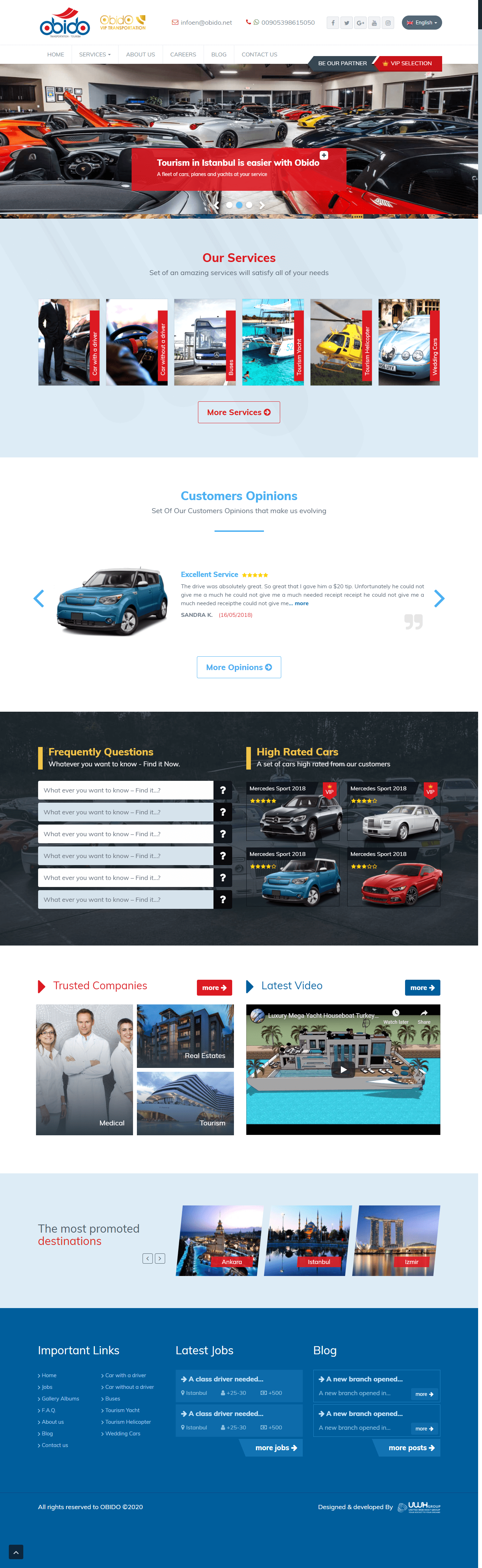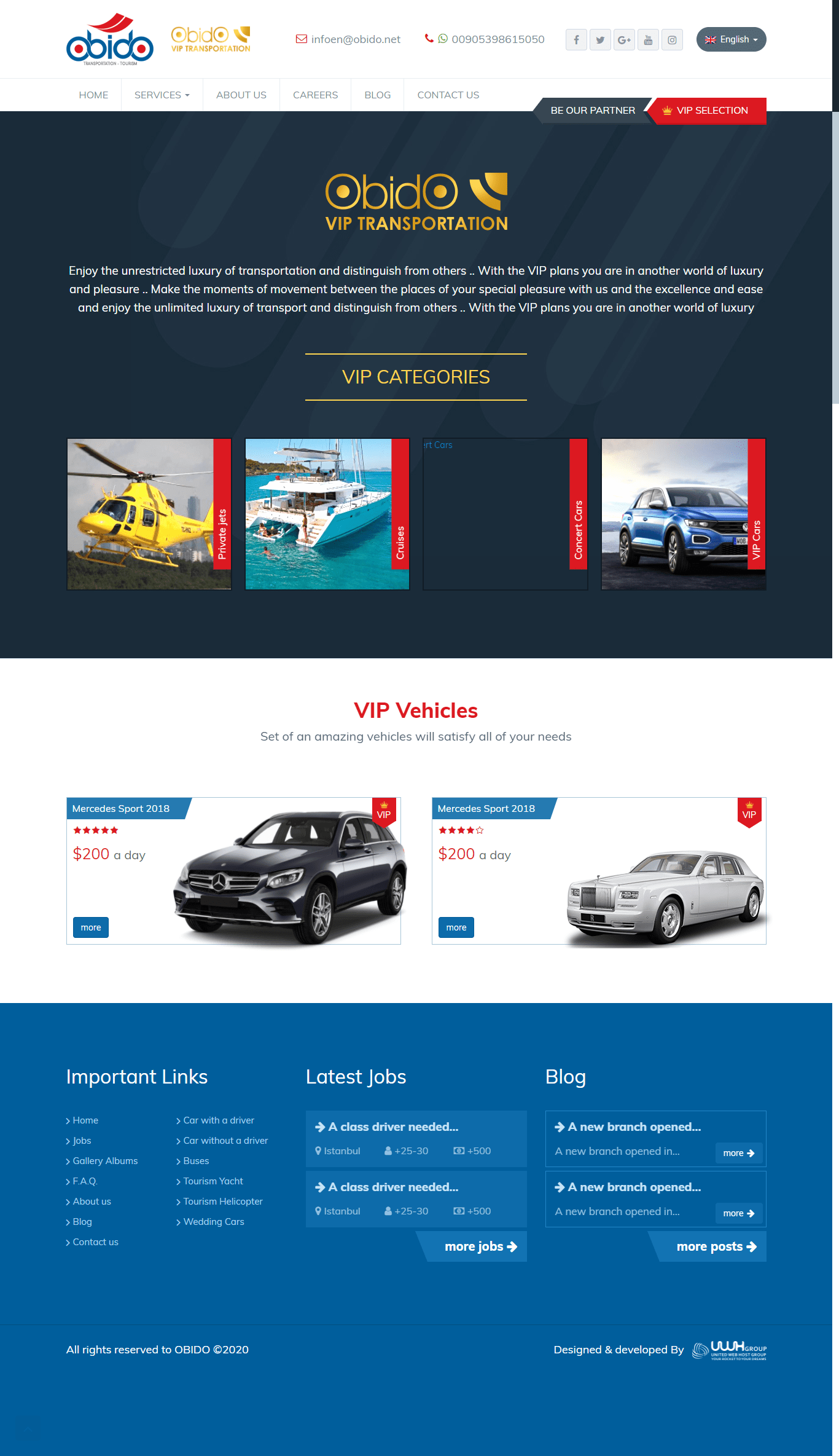 A company for renting luxury means of transportation in Turkey .. A large introductory site with many features and multilingual, relying on WordPress, designed specifically for the UWH Group in Turkey