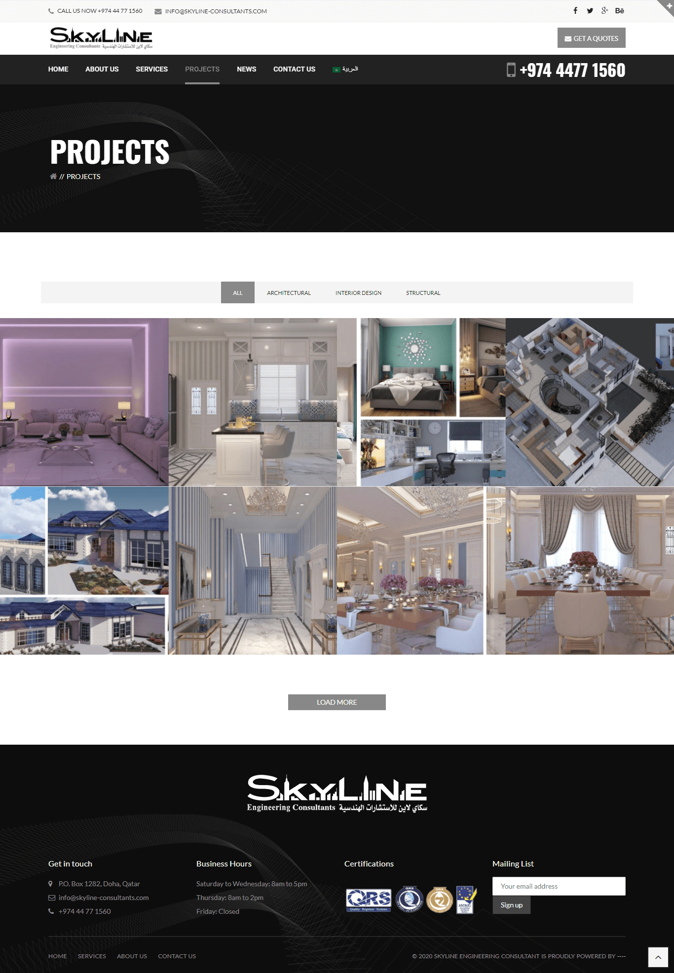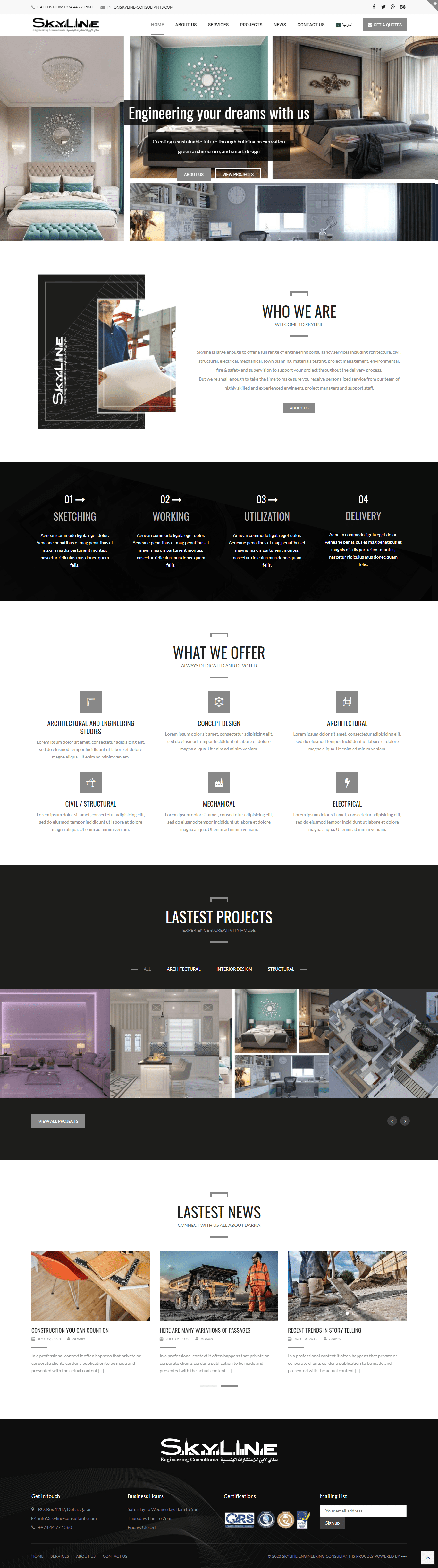 شركة سكاي لاين هي شركة متخصصة فى العقارات و التشطيبات بدولة قطر , تم عمل التصميم خصيصاً لشركة انجازات بدولة قطر, تم الاعتماد على وردبريس, موقع متعدد اللغات والمميزات